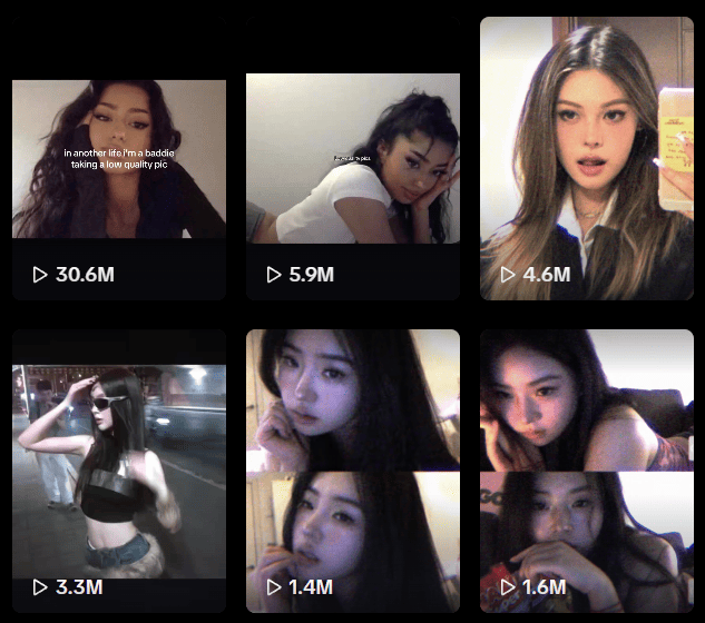 “in another life i’m a baddie taking a low quality pic” -> 30.6M views on Oct 1