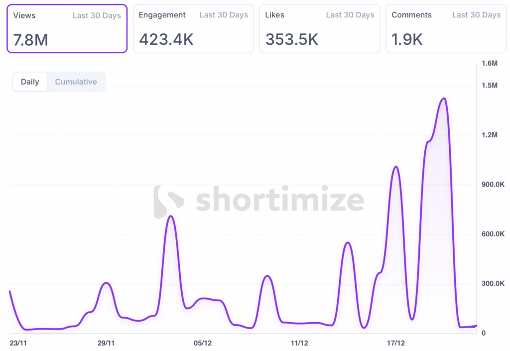 This time, they are going all-in with one repeatable end-of-the-year format: “2025 Poop Wrapped” and they pulled 7.8M views in the last month.